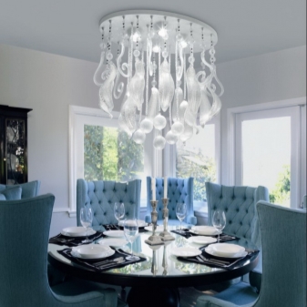 Тук обаче трябва да имате предвид няколко неща. Полилеи като тези ще изглеждат перфектно, ако имате високи тавани у дома. Ако таваните са ниски, тогава такъв обект може да наруши баланса на стаята и всичко ще изглежда тежко. За кухнята изобщо не си струва да купувате такива дизайни..