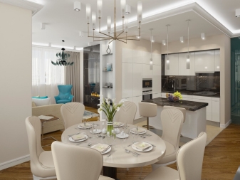 Струва си да се отбележи, че с помощта на правилно подбрано осветление можете да зонирате пространството в стаите. Например, ако холът ви е комбиниран с трапезарията, тогава трябва да присъства и осветлението на групата за хранене. Ако в стаята се комбинират няколко зони, тогава си струва да използвате два полилея, както и да изберете алтернативна опция за функционалната зона, например подова лампа и т.н..