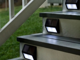 - В частна къща за осветяване на стъпала не се използват само прожектори, но и стенни свещи. Такова осветление е много надеждно, но обикновено апликата свети много ярко. Ето защо е важно да изберете желаното ниво на яркост..