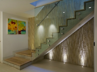 При избора на стълбищно осветление основната задача е да го направите по -удобен по този начин и компетентно да допълвате интериора с него. Ето защо е по -добре да закупите крушки с разсеяна светлина. Насочената светлинна мощност е опасна, тъй като може да ви заслепи, когато преминавате през такава структура. Също така е важно да се вземе предвид силата на такива лампи. Тя не трябва да бъде твърде висока, но не и твърде ниска..