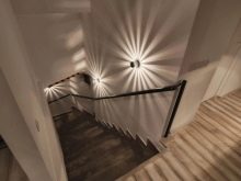 За многоетажен апартамент или многоетажна частна къща стълбището е важна част от интериора. Много хора са склонни да го използват не само като функционален елемент, но и като декоративна структура. Понякога се опитват да го подчертаят, като използват за това подсветка. Взема се предвид и фактът, че домакинствата използват стълбите по всяко време на деня, поради което лампите са неразделна част от такъв дизайн..