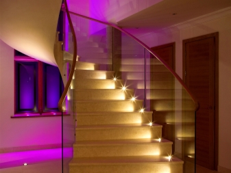 Те са много популярни, защото са много надеждни и практични. Такива продукти обикновено се правят под формата на точкова таванна светлина над стълбите. Могат да се монтират и на стена. Голямото предимство на тези осветителни тела е, че можете да изберете всеки цвят на осветлението, който харесвате. Освен това може да бъде както топло, така и студено..