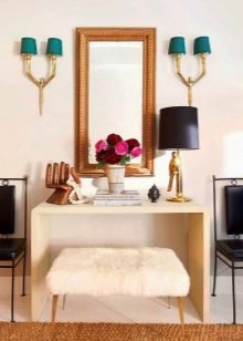 - коридор и коридор. Дневната светлина често не е включена в тези помещения и инсталирането на свещник помага да се постигне меко и равномерно осветление. Аплици могат да бъдат окачени по стената, от двете страни на огледало или шкаф за обувки. Когато инсталирате сдвоени опции до огледалото, трябва да изберете абажури без издълбани шарки, в противен случай сенките, хвърлени върху огледалото, ще изкривят изображението;