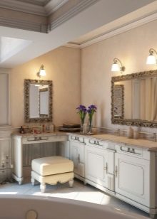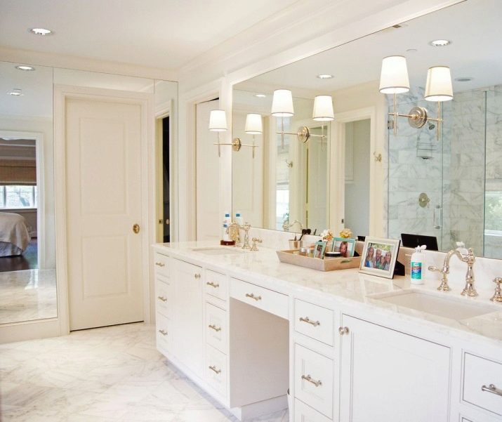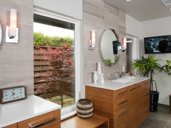 - в банята и тоалетната аплиците могат да бъдат независим източник на осветление и допълнително да украсят стаята. Плафонът трябва да бъде от затворен тип, за да се предотврати навлизането на влага, и е по -добре да откажете абажури от плат и хартия. Продуктите на скоби със сенници са монтирани по двойки от двете страни на огледалото, което позволява използването му при добри условия на осветеност. Опциите за монтиране на стена с хромиран корпус ще се хармонизират добре с кранове и водопровод.