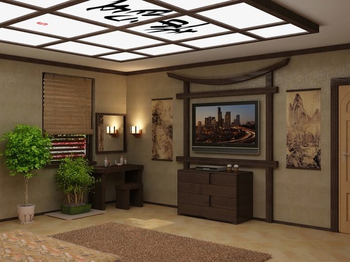 - Японски стил аплици от дърво с хартиени абажури са подходящи: