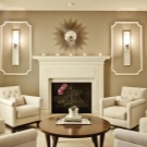 - за достатъчно ярко осветление трябва да изберете модели под формата на два нюанса или абажури, фиксирани на обща основа. В допълнение към доброто осветление, такива двойни лампи изглеждат много красиви, когато са поставени по двойки близо до камина, огледало или картина. Трябва да се има предвид, че апликата и огледалната рамка или картини трябва да бъдат направени в един и същи стил..