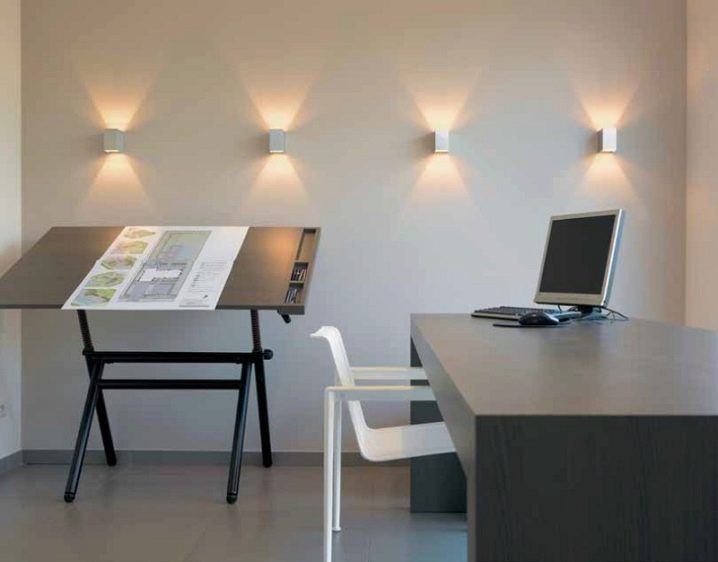 - аплици, инсталирани на височина 2 метра, ще осветяват по -голямата част от помещението;