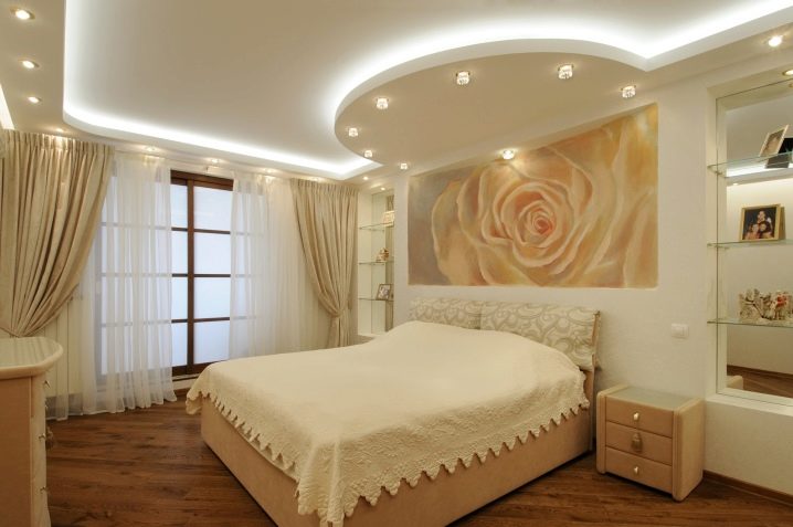Също така си струва да се обмисли местоположението на таванните светлини в зоната на огледалото, гардероба или тоалетката. Ще бъде много удобно, ако такива крушки са независими от основното осветление. По този начин можете да се приготвите за лягане или да се приготвите сутрин, без да пречите на любимия човек..
