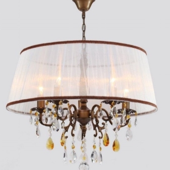 - Класически стилът насърчава използването на многостепенни полилеи с тъканни нюанси. Те изглеждат особено елегантни, ако плафонът е по -лек от основата..