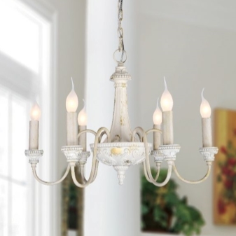 - За стил Прованс необходимо е също така да вземете многостепен полилей върху издълбана основа, но в този случай както основата, така и самите плафони трябва да са леки. Добре е, ако сенките са от флорална тъкан.