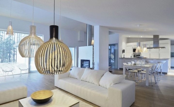 Заслужава да се отбележи, че не се препоръчва да се окачват малки опции в просторни стаи: те ще изглеждат нелепо на фона на такова голямо отворено пространство.