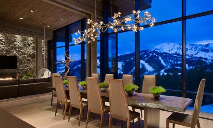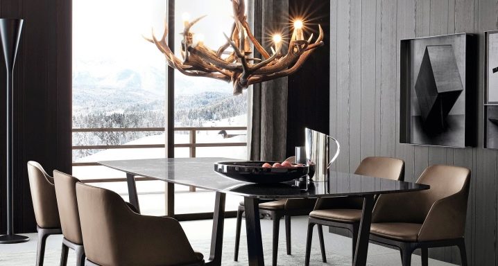 Екологичните мотиви сега са на мода, така че много хора предпочитат да изоставят класическите форми в полза на необичайните. Този дизайн на лампата едновременно прилича на голите клони на дърво и рогата на някое животно. Изборът на крушки също е забележителен: не се използват традиционни лампи, а се правят под формата на свещи.