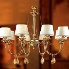 - Злато. Позлатените модели са класика на жанра. Златото винаги изглежда тържествено. Полилеи от този цвят са по -подходящи за декориране на традиционни стаи, а не на модерни, но в някои съвременни тенденции е разрешено и използването на позлата..