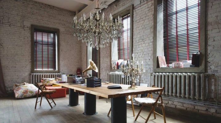 За младежка стая или за апартамент в индустриален стил, необичаен полилей за паяк е добър избор. Той е голям и функционален, така че лесно ще осветява голяма площ. За високи тавани в такива помещения можете да изберете античен полилей, допълнен от необичаен фрагмент, например кристален обемен модел, окован в желязна сфера.