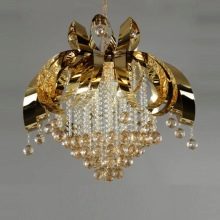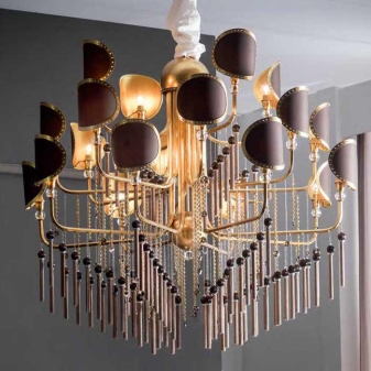- Злато. Позлатените модели са класика на жанра. Златото винаги изглежда тържествено. Полилеи от този цвят са по -подходящи за декориране на традиционни стаи, а не на модерни, но в някои съвременни тенденции е разрешено и използването на позлата..