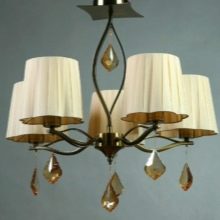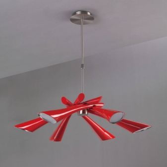 Моделите с много рамена са разделени по броя на лампите: три рамена, пет рамена и т.н.. Единични осветителни тела често се използват в малки стаи, например в кухнята, тъй като площта на стаята ви позволява напълно да я осветявате само с един източник на светлина.