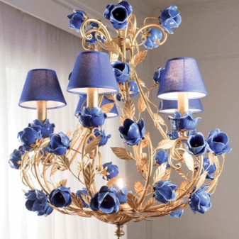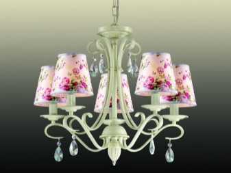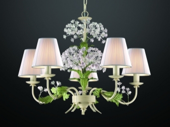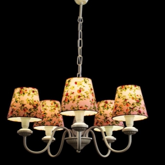 - За стил Прованс необходимо е също така да вземете многостепен полилей върху издълбана основа, но в този случай както основата, така и самите плафони трябва да са леки. Добре е, ако сенките са от флорална тъкан.