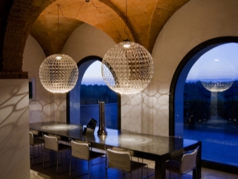 Висулките се произвеждат не само в различни форми, но и в напълно различни размери, вариращи от огромни готически полилеи-колела до класически модели с три рамена. Можете да вземете лампа за просторна стая, а за доста тясна, единственото ограничение е височината на таваните: тя трябва да бъде повече от 3 м, в противен случай висящите модели ще докоснат главите на преминаващите хора.