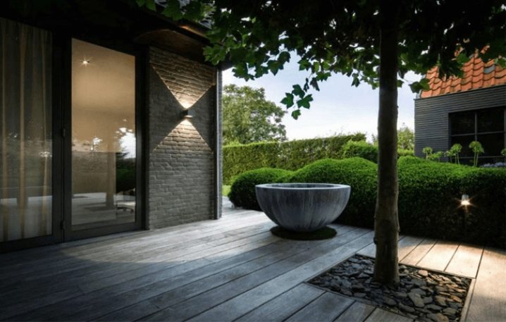 - Източници на насочена светлина. Този тип насочва светлинния поток към определен обект, докато светлината практически не се разсейва навън, като се концентрира напълно върху обекта. Такива опции са подходящи за поставяне на акценти, например, ако трябва да подчертаете красива статуя или сладка пейка..