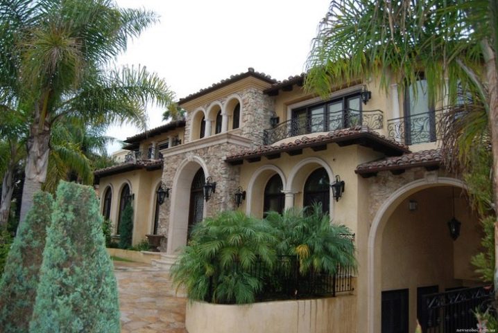 За украса на къщи в средиземноморски стил обичайно е да се използват класически фенери на стълба. Те са перфектно съчетани с общия спокоен стил, а през нощта създават уникална уютна и леко загадъчна атмосфера. Поради избора на цветно стъкло (обикновено се предпочитат топли нюанси, като жълто или червено), осветлението е леко приглушено, но достатъчно. Усещането е, че някъде тук гори огън и в такъв двор човек се чувства напълно в безопасност..