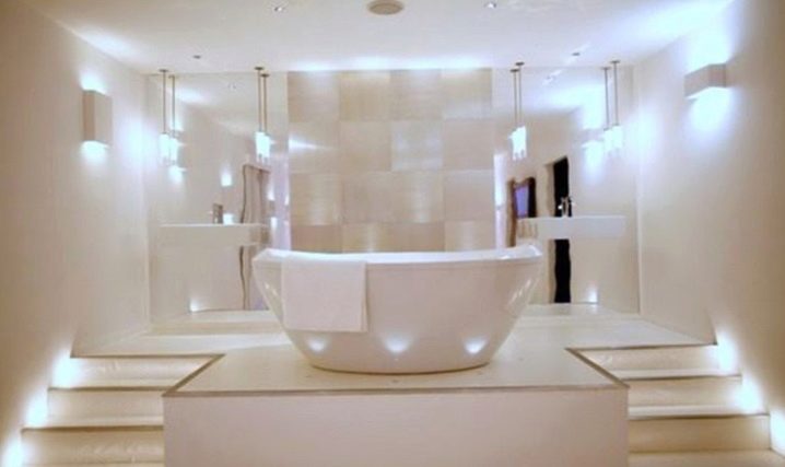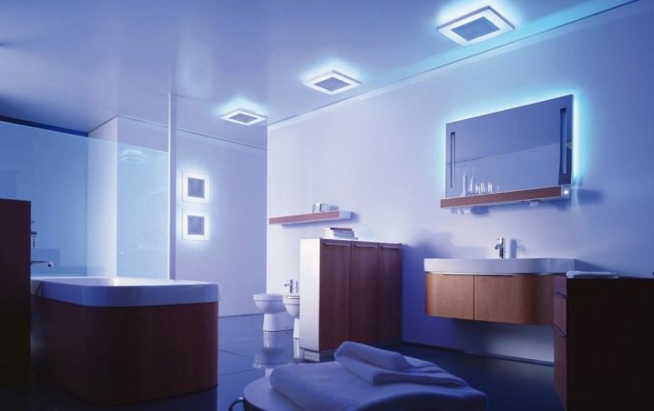 Доскоро такива устройства бяха инсталирани само на тавана, но днес е възможно да се постави точково осветление в банята по стените..