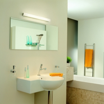 Така че, лампите за баня могат да бъдат под формата на бра, обикновен плафон с крушка или изискан полилей. Необходимо е да изберете външния вид на такова устройство въз основа на площта на стаята, нейния стил, както и личните предпочитания..