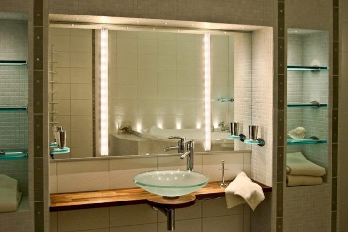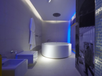 Най -популярни са моделите, вградени в огледалната рамка или във ваната по нейния периметър. Когато избирате такъв източник на осветление, трябва предварително да се погрижите мебелите и други интериорни предмети да са подходящи за инсталиране на такива устройства..