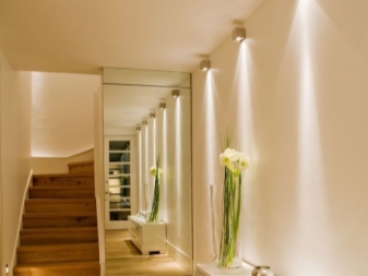 Коридорът е един вид лице на къщата, така че е особено важно осветлението да е ефективно. От съображения за безопасност е по-добре да поставите аварийни светлини, работещи от батерии или акумулатори, на стълбите..