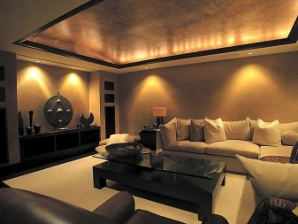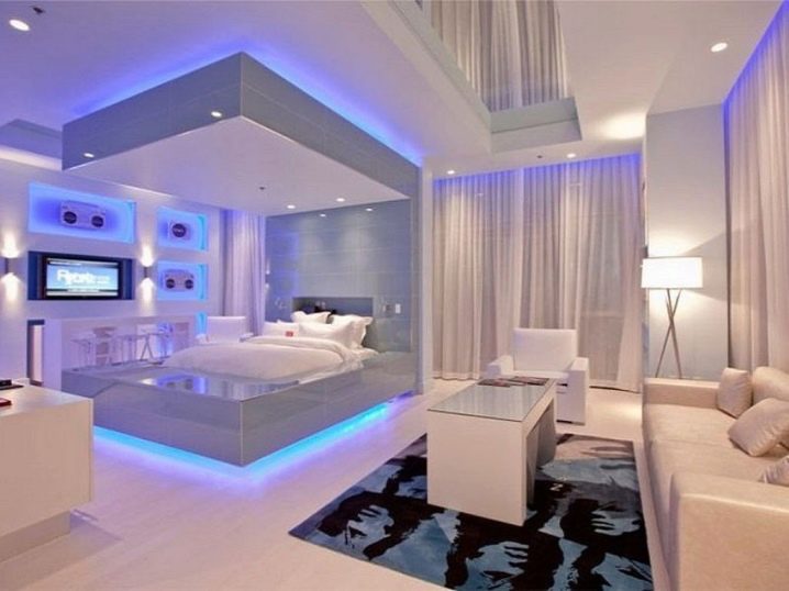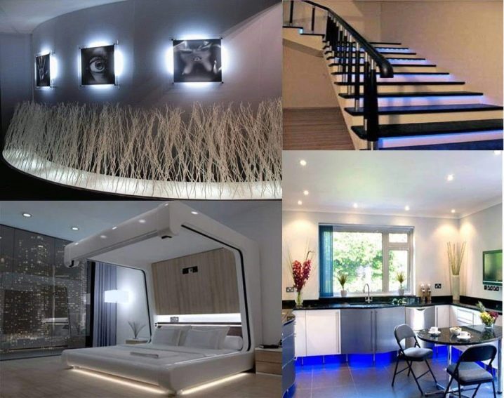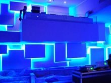 Всеки дискретен интериор може да бъде оживен с декоративно осветление. Подсветката може да комбинира прожектори с LED или газоразрядни кабели. Ярък пример за това е стилът висока технология.