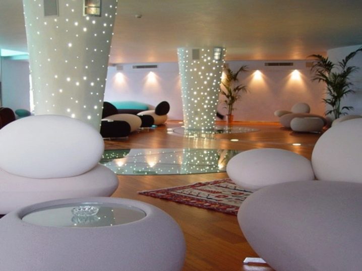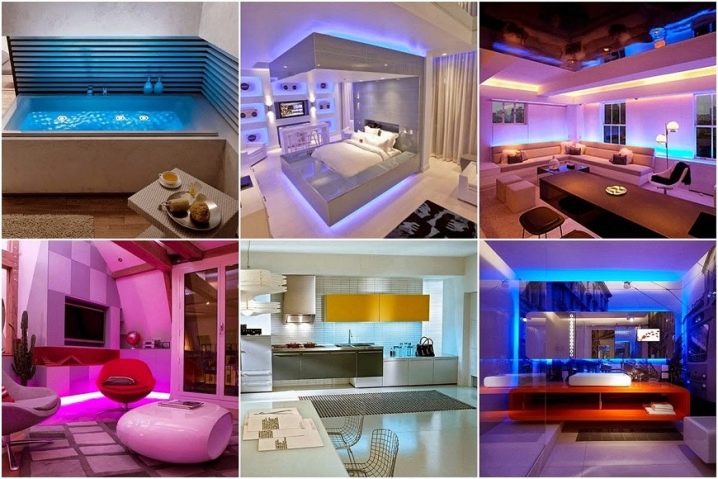 Ако наемателите имат креативност, е възможно да украсят сами, тъй като горните устройства не изискват сложна инсталация. Такова осветление изглежда особено впечатляващо през нощта без фоново осветление..