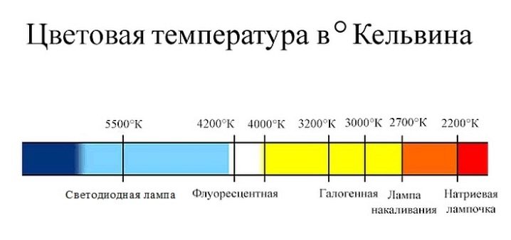 Не подценявайте ефекта на светлия цвят върху човек. Това няма да причини големи вреди на здравето, но може да повлияе на настроението, емоциите – отпуснете се или, напротив, дайте бодрост. За да разберете какъв цвят ще бъде това или онова излъчване, достатъчно е да обърнете внимание на опаковката. Цветната температура се измерва в Келвин и се обозначава с главна буква К. За да стане по -ясно, можете да използвате специални таблици с диапазоните на тези стойности и съответните нюанси..