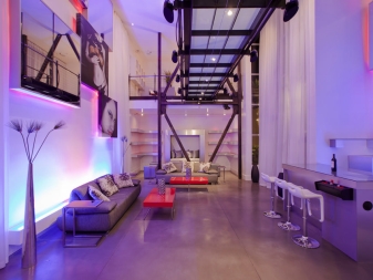 Всеки дискретен интериор може да бъде оживен с декоративно осветление. Подсветката може да комбинира прожектори с LED или газоразрядни кабели. Ярък пример за това е стилът висока технология.