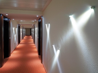 Коридорът е един вид лице на къщата, така че е особено важно осветлението да е ефективно. От съображения за безопасност е по-добре да поставите аварийни светлини, работещи от батерии или акумулатори, на стълбите..
