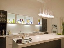 В кухнята освен фонова светлина се изисква осветление над работната повърхност. Освен това можете да подчертаете зоната на бара с декоративно осветление. Ако масата е в кухнята, по -добре е да поставите основния източник на светлина над нея..