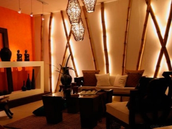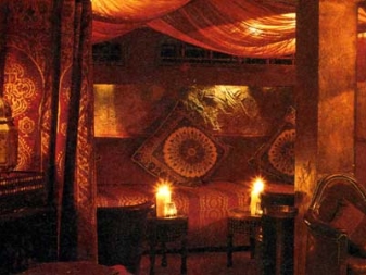 Цип в африкански или източен интериор можете да използвате осветителни тела. Осветяването на нишите изглежда особено оригинално – това придава на ориенталския интериор атмосфера на мистерия и изтънченост. Етническата стилизация ще се хареса на любителите на пътуванията, тя винаги ще изглежда оригинална и няма да остави никого безразличен.