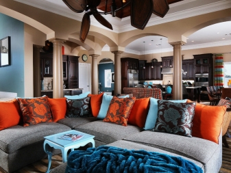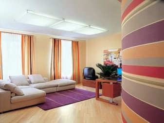 - Позволява ви да комбинирате части от стая в едно цяло – в този случай интериорът не изглежда разпръснат, а прилича на едно цяло.