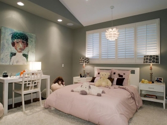Лампите, покрити с непрозрачни или непрозрачни абажури, са подходящи за детска стая. Тук естетиката е за предпочитане пред безопасността и практичността, както и спазването на всички норми и стандарти. Ако детето вече е ходило на училище, е необходимо да поставите допълнителни електрически уреди до бюрото..