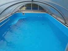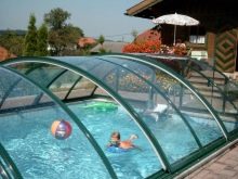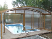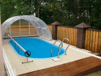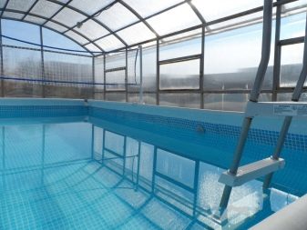 Има необичайни външни затворени системи. Така че, могат да бъдат вкопани или рамкови модели, които имат покрив под формата на оранжерия отгоре. По този начин някои дори използват този дизайн за плуване през зимата, след като са извършили отопление там..