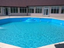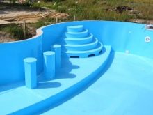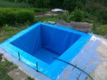 Филмът се излага и изправя вътре в ямата, а отгоре по краищата се притиска с тухли или камъни. След това в него се излива вода и само за няколко часа вече можете да използвате такъв басейн, когато водата се затопли малко. Това е проект за пул за лична непостоянна употреба..