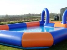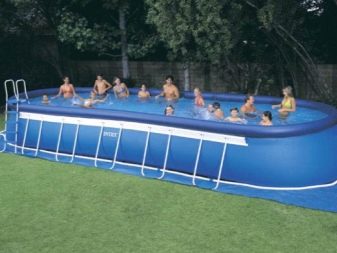Инсталирането на басейн може да отнеме време. Ще бъде трудно да го надуете сами. За да направите това, трябва да закупите допълнителна помпа. Ако изведнъж случайно го счупите, тогава няма да работи за надуване на басейна по друг начин, структурата ще бъде временно неизползваема. Размерът на такъв басейн се избира в зависимост от планираното местоположение, както и от площта на обекта.