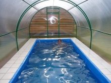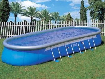 Над басейна може да се направи балдахин. По този начин той ще бъде затворен от ярките слънчеви лъчи и от вятъра, който може да раздуха зеленина и други отломки там. Но надуваемите мини модели нямат навес или покрив. В тях водата се затопля от слънцето. Ето защо, преди да плувате, трябва да съберете вода и да изчакате, докато се затопли..