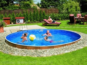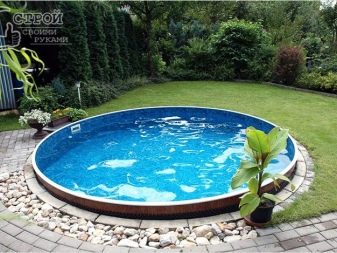 Някои рамкови басейни са заобиколени от камъни с различни размери, около които също поставят брони. По този начин можете да преминете през камъчетата и след това да плувате. Това ще поддържа краката ви здрави. В допълнение, това е чудесен вариант за декор..