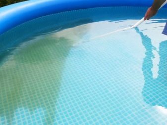 Но този тип басейн има и някои недостатъци. Така че, тя изисква редовна поддръжка, за разлика от моделите от предишния тип. Вътрешността на басейна трябва да бъде внимателно обработена и измита със специални продукти..