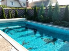 Отделно трябва да се отбележат икономичните опции за домашен басейн. Така че, те са направени от филмови или рекламни банери. Това е чудесен вариант, ако изведнъж решите да организирате басейн, но не искате да харчите пари за голяма структура. За него просто трябва да изкопаете малка яма, в която трябва да поставите дебел филм или банер.