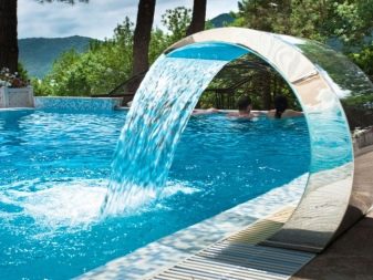 Инсталирането на всички тези допълнителни функционални елементи е много лесно, тъй като основата на басейна е разположена дълбоко под водата. Следователно можете лесно да скриете всички комуникации. Но това е най -капризният вид басейн, за който да се грижим, той се нуждае от постоянни грижи. Трябва да се мие редовно и да се сменя водата в него. Това е и най -скъпият дизайн. За да го инсталирате, ще трябва да положите много усилия..