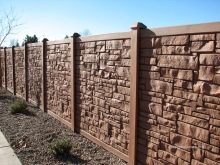 Друг популярен вид довършителни работи за оградни стълбове са пластмасовите панели, чието инсталиране не отнема много време. Голям брой цветове и щампи върху тях ви позволява да изберете дизайн за всеки вкус.