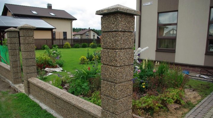 Обикновен бетонен стълб изглежда скучен и незабележим, затова специално внимание се отделя на декорирането на опори за огради. Основното предимство в този случай е, че може да се използва абсолютно всяко покритие за бетонна основа..