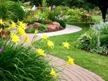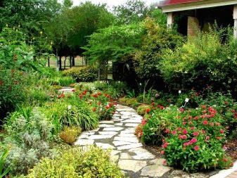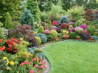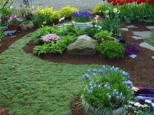 Интересен вариант в този случай би бил използването на естествен пейзаж: ако на мястото има низини или хълмове, можете да счупите многостепенни цветни лехи точно върху тях.