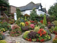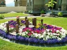 Малки цветни лехи могат да бъдат поставени под стената на къщата или вертикални цветни лехи. Добро решение би било да се счупи цветното легло по оградата – тя красиво ще граничи със сайта и ще добави акценти на входа към него.