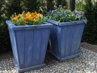 Не по-малко атрактивни, но, за съжаление, сравнително краткотрайни дървени контейнери. Възможно е да се удължи експлоатационният им живот, ако преди засаждане на растение в бъчва, дървена кутия или кошница, покриете дървена повърхност с полиетилен с предварително направени отвори за свободно отстраняване на излишната вода.
